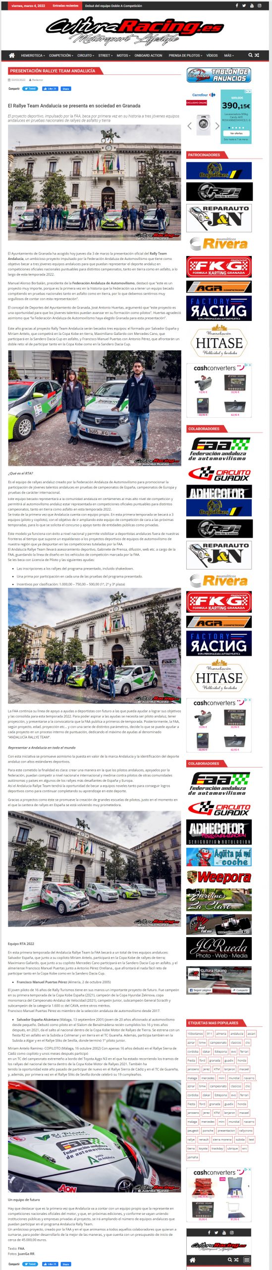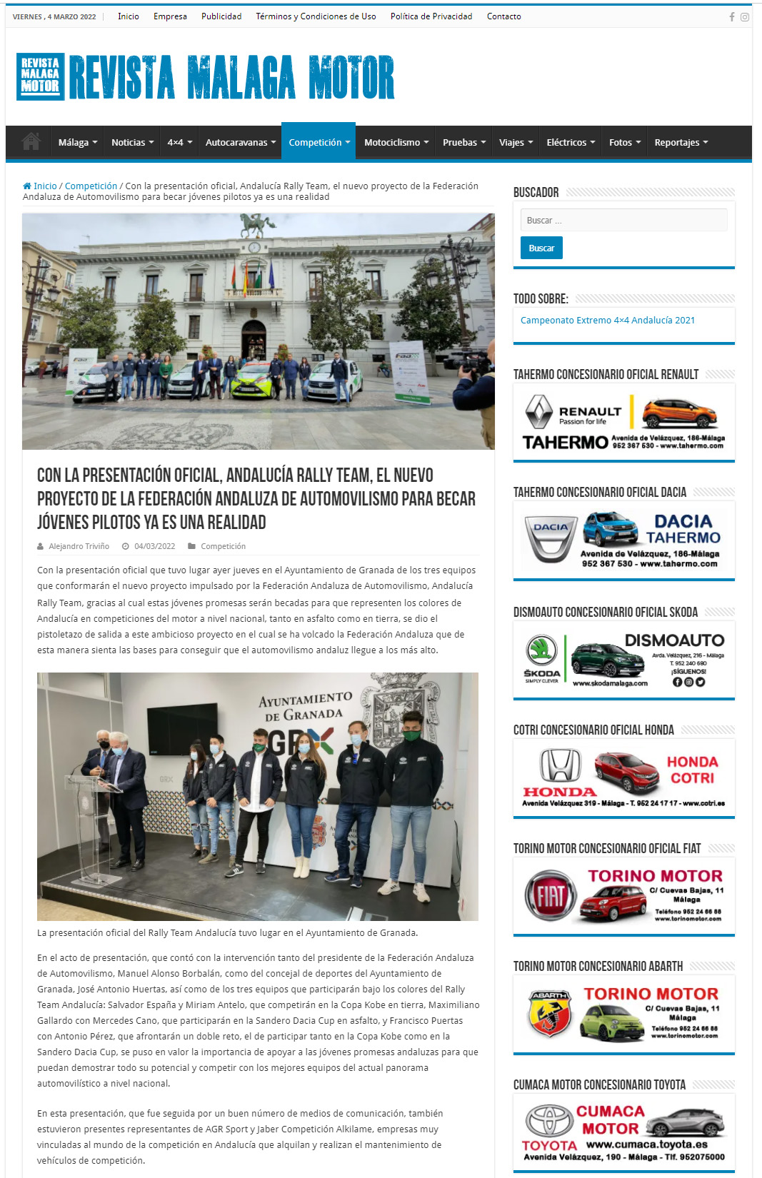 Noticia Revista Málaga Motor presentación Rally Team Andalucía 040322 – pincha para ir.