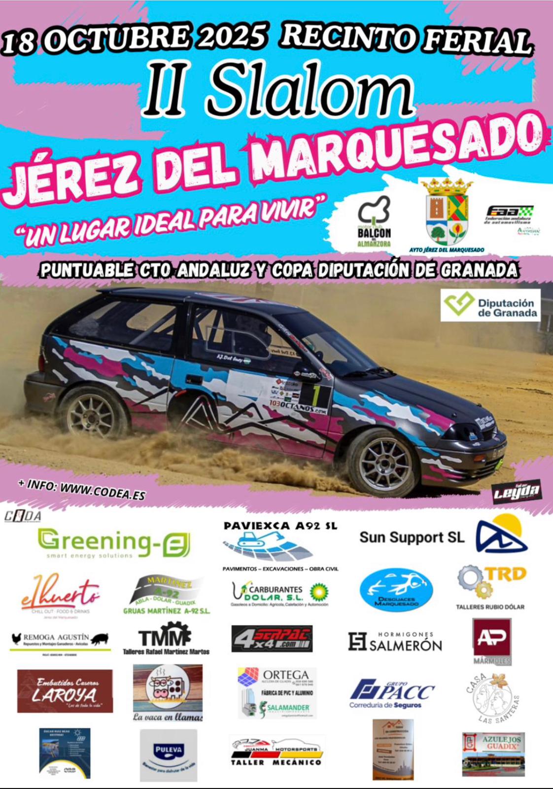Jerez del Marquesado (Granada), 16 de octubre de 2025. El II Slalom Jerez del Marquesado se prepara para ser el escenario de la décima parada puntuable del exigente Campeonato de Andalucía de Slalom 2025 , además de ser puntuable para la Copa Diputación de Granada 2025. Con solo unas pocas carreras restantes en el calendario, la prueba de este sábado 18 de octubre se antoja crucial en la lucha por el título en las distintas categorías.