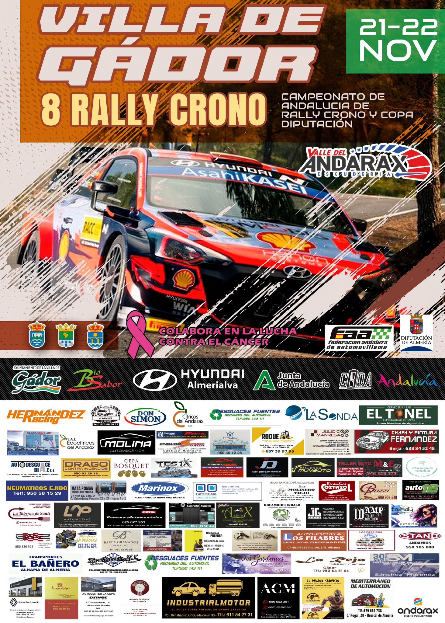 FAA, 20 de noviembre de 2025 .- El mejor motorsport volverá a ver la luz este sábado en el municipio almeriense de Gádor, que acoge la octava edición del Rallycrono Villa de Gádor; una cita que cerrará el Campeonato de Andalucía de Rallycronos 2025 y que congregará a algunos de los vehículos y pilotos más competitivos del panorama regional.