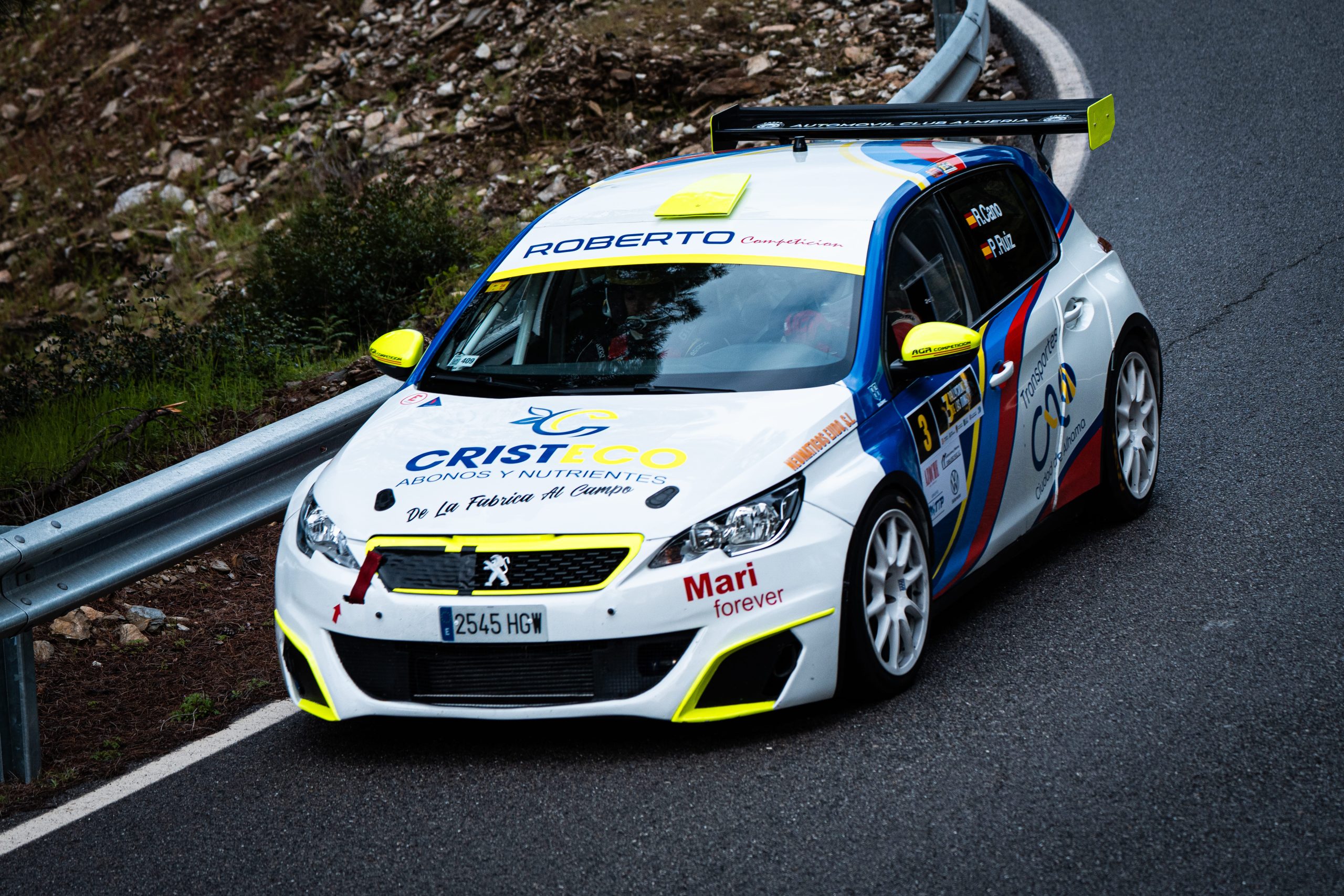 El podio del RallyCrono de las Minas lo completaron Roberto Cano y Pablo Ruiz (Automóvil Club de Almería), segundos a solo 18,2 segundos con su Peugeot 308 Racing Cup, y Cristian Carrasco junto a José Carlos Barragán (Automóvil Club Almendralejo), terceros en la general y vencedores en la Clase II con su Peugeot 106.