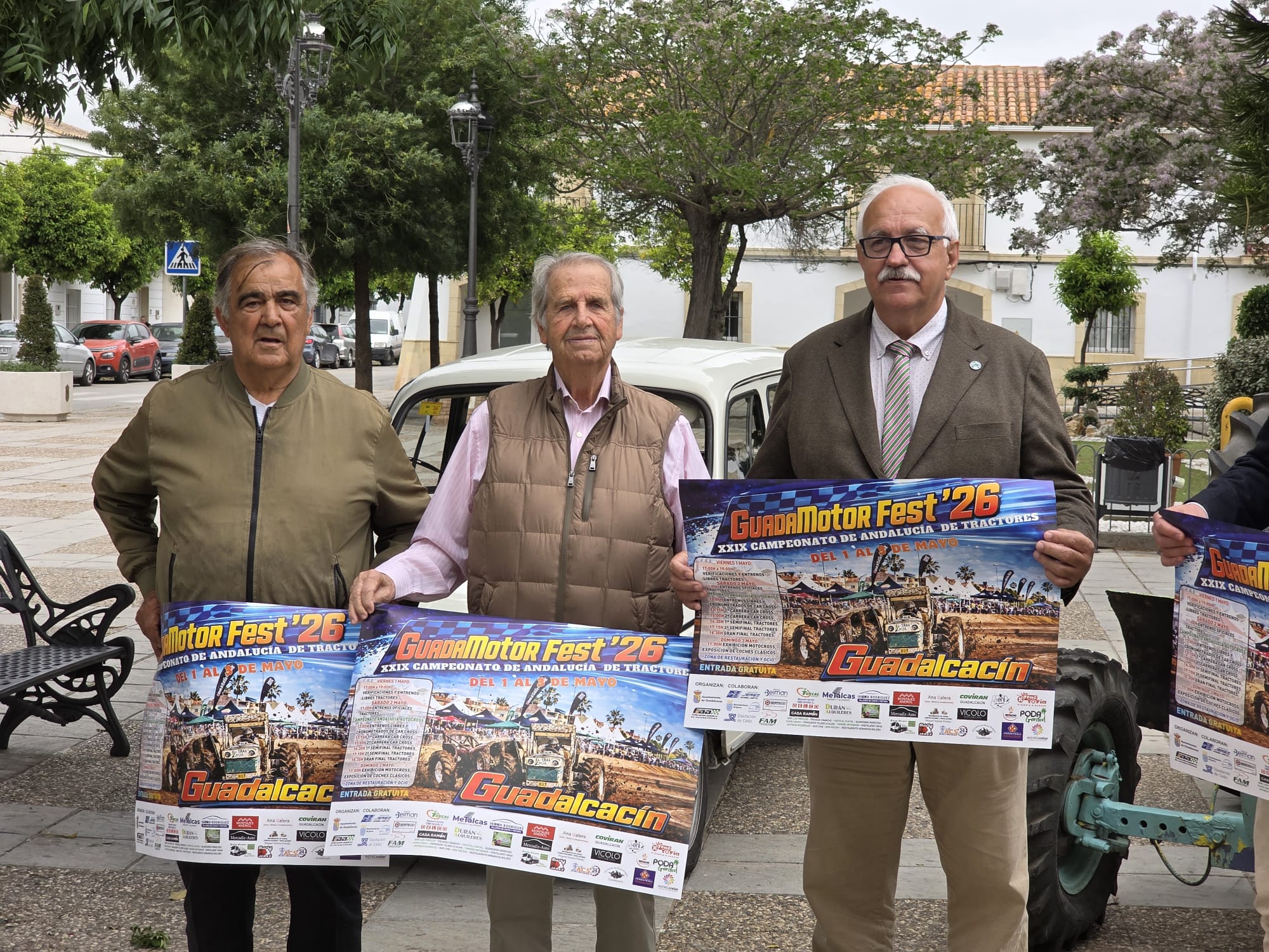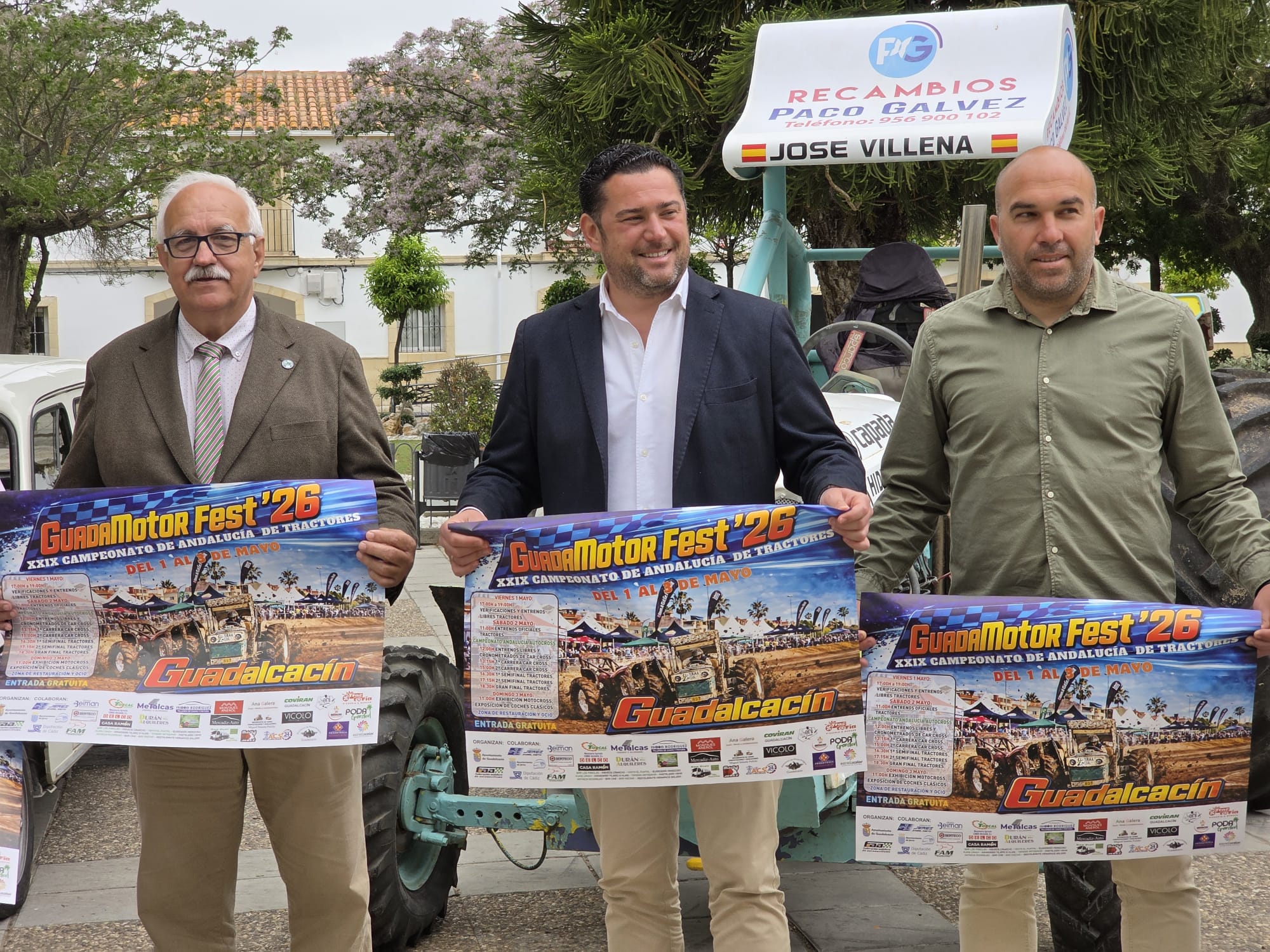 Jerez, 7 de abril de 2026.- El salón de plenos del Ayuntamiento de Guadalcacín y la plaza de la Artesanía han acogido hoy la celebración del cartel oficial y de la programación del GuadaMotor Fest 2026, el evento ya consolidado que engloba a las míticas Carreras de Tractores de Guadalcacín. Se trata de la 34 edición de este mítico evento y la número 29 como Campeonato de Andalucía de la una modalidad, única en el mundo.