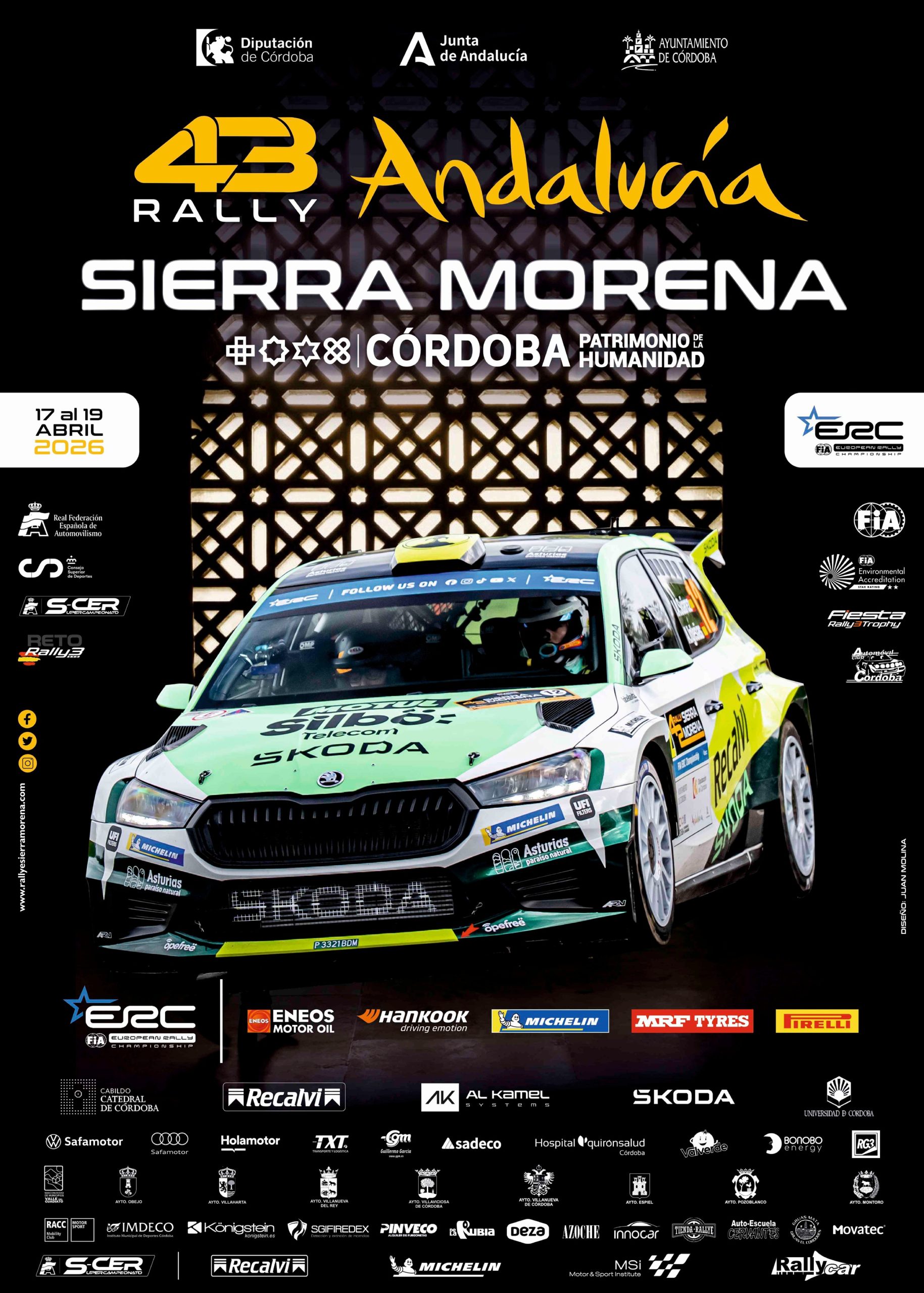 Córdoba, 14 de abril de 2026.– La Federación Andaluza de Automovilismo (FAA) ha estado presente en la mañana de este martes en la presentación oficial del 43º Rallye de Andalucía Sierra Morena – Córdoba Patrimonio de la Humanidad, que arranca este jueves y volverá a situar a la provincia como epicentro del automovilismo europeo.
